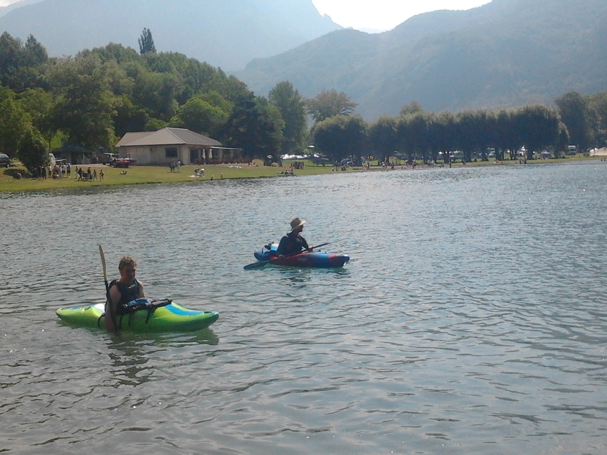 Entre deux épreuves du triathlon de Valbonnais, nous sommes allés naviguer, Pauline, Florian, Julien et moi. Pas la Malsanne, comme l’an dernier, mais les gorges de la Bonne dont le niveau était élevé, vu les chaleur de la semaine passée. Rien de bien exceptionnel au départ, tout le monde arrive à passer son passage favori sans baigner jusqu’à l’ex-infran. Les choses se compliquent au moment de débarquer, lorsque nous voyons arriver Pauline à la nage suivie de près par son bateau. Un malheureux caillou, paraît-il… Nous réussissons à ramener Pauline à la berge juste avant l’ex-infran. Mais nous regardons passer son bateau devant nous et continuer dans le rapide. Manque de chance, nous ne sommes pas assez rapide pour le récupérer : Pauline a donc continué l’aventure à pied, par la route.