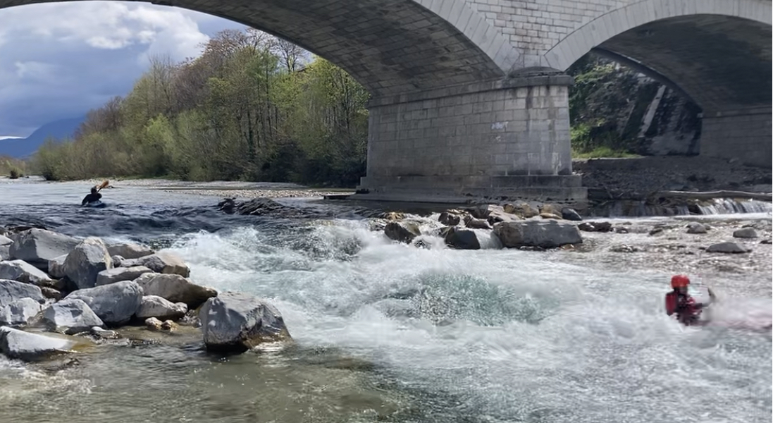 Bonne décision puisque les difficultés montent un peu (ça reste du II-III) et le niveau minimal de la rivière rend quelques endroits assez manoeuvriers.